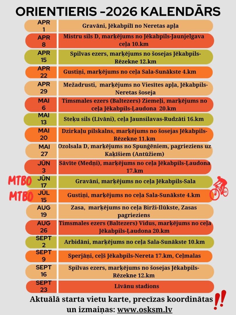 Informāciju par “Orientieris 2026” sacīkšu norisi, kalendāru, kārtu norises vietu koordinātām un rezultātiem, lūdzu, skatiet OSK “Sēlijas mežs” mājaslapā www.osksm.lv. Papildu informāciju var iegūt, sazinoties ar sacensību organizatoriem: e-pasts: osksm@inbox.lv, tālrunis 29162633 (Daina), 26517129 (Justs).